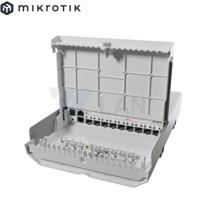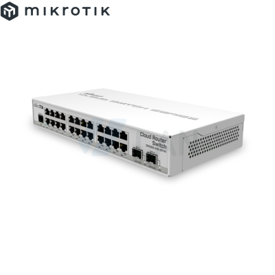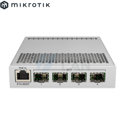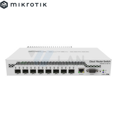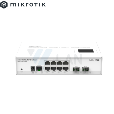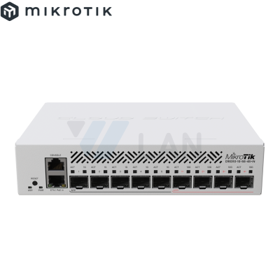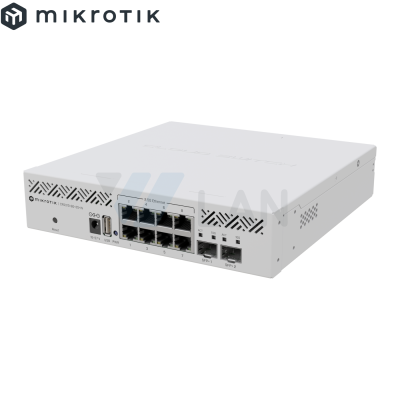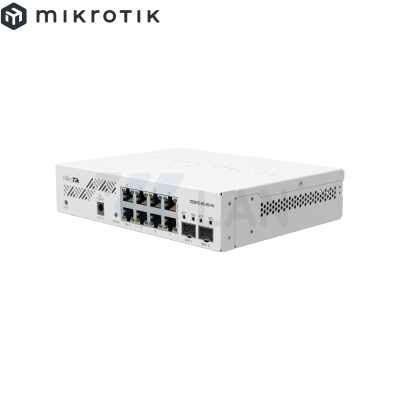 RouterBORD 5009UPr+S+ with Marvell Armada ARMv8 CPU (4-cores, 1.4GHz per core), 1GB of DDR4 RAM, 1GB NAND storage, 1x 2.5Gbit LAN (802.3af/at PoE-out and POE-in), 7x 1Gbit LAN (802.3af/at PoE-out and POE-in), 1x SFP+ port, RouterOS L5, metal desktop case, PSU