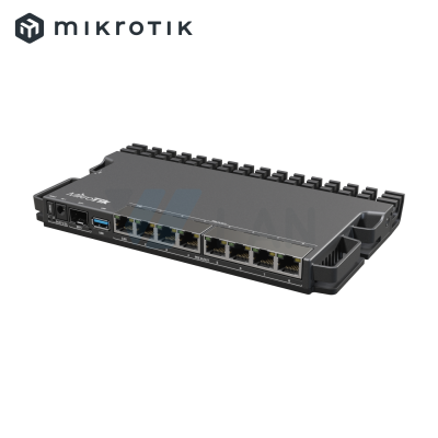 RouterBORD 5009UG+S+ with Marvell Armada ARMv8 CPU (4-cores, 1.4GHz per core), 1GB of DDR4 RAM, 1GB NAND storage, 1x 2.5Gbit LAN, 7x 1Gbit LAN, 1x SFP+ port, RouterOS L5, metal desktop case, PSU