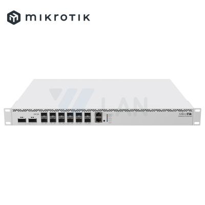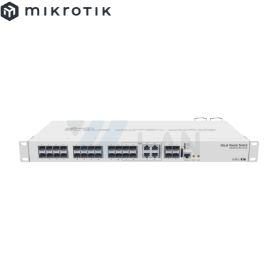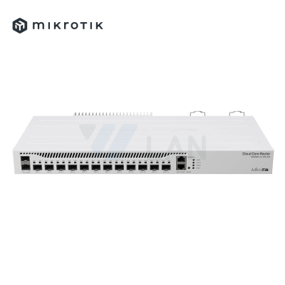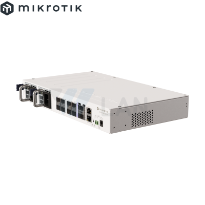 Cloud Core Router 2004-1G-12S+2XS with Annapurna Alpine AL32400 Cortex A57 CPU (4-cores, 1.7GHz per core), 4GB RAM, 1x Gigabit RJ45 port, 12x 10G SFP+ cages, 2 x 25G SFP28 cages, RouterOS L6, 1U rackmount case, Dual PSU
