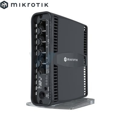 hAP ax³ with 4-core 1.8GHz CPU, 1GB RAM, 4 x Gbit LAN, 1 x 2.5 Gbit LAN (supports PoE-in/out), two wireless interfaces (built-in 2.4GHz 802.11b/g/n/ax dual-chain, built-in 5GHz 802.11a/n/ac/ax dual-chain), 3.3dBi 2.4GHz external antenna, 5.5dBi 5GHz external antenna, tower/desktop case, USB, PSU, RouterOS L6